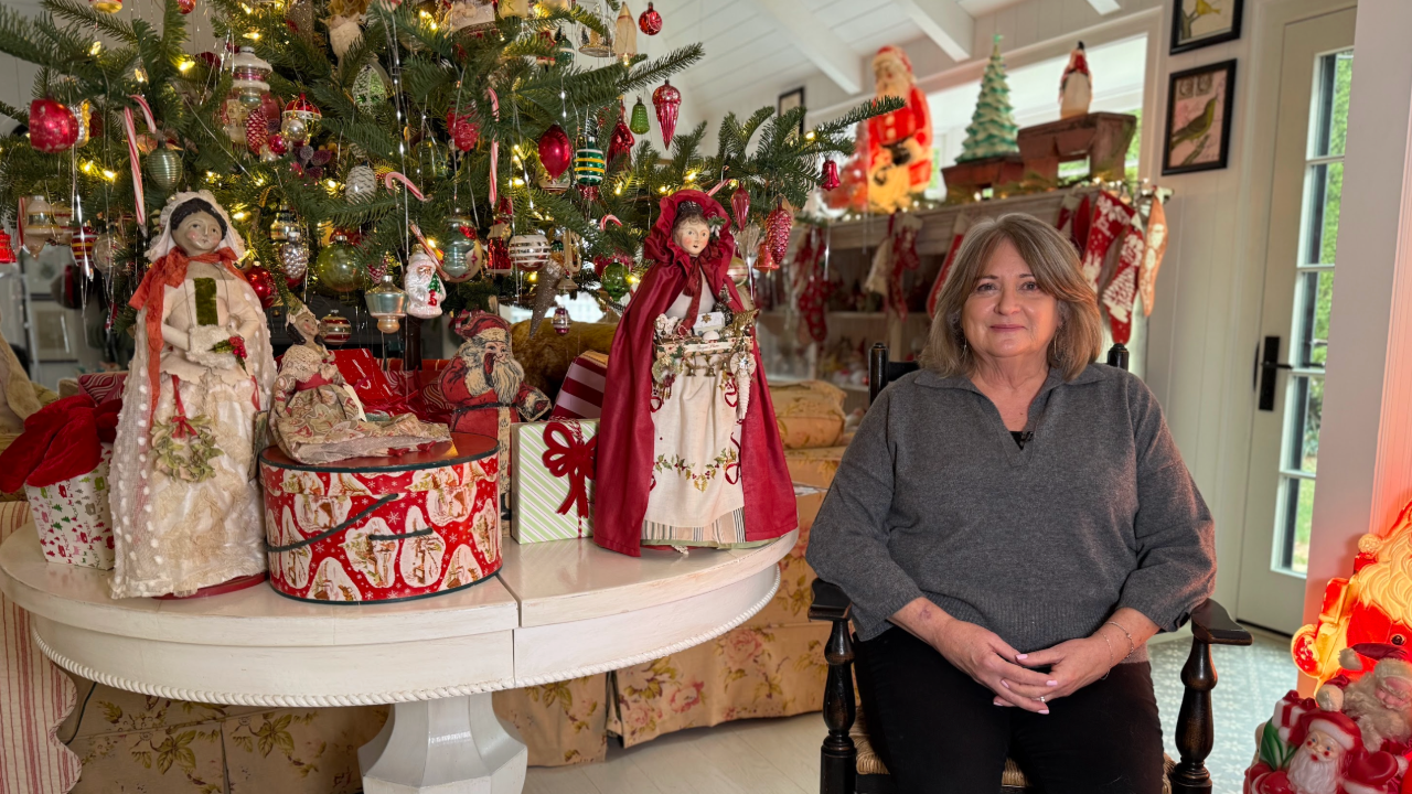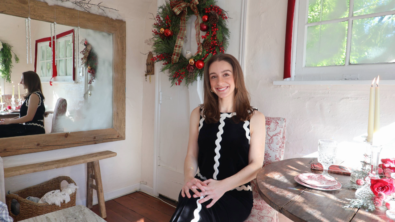 In the dining room, Tamara shows us her beautifully set holiday table, where traditional Christmas colors come together in a festive arrangement.