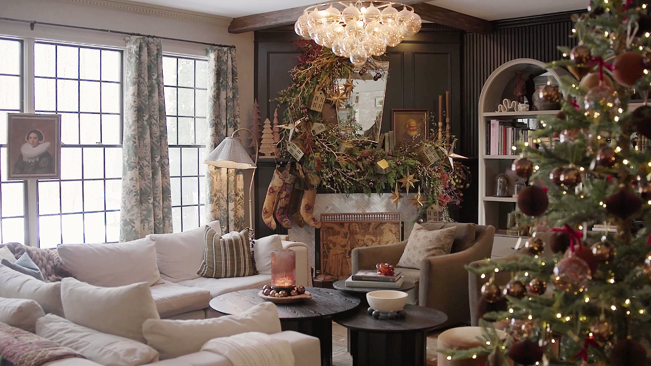 Known for her love of classic design, Tamara layers rich plaids, lush greenery, and twinkling lights throughout her home, creating a warm, inviting atmosphere that feels both timeless and deeply personal.